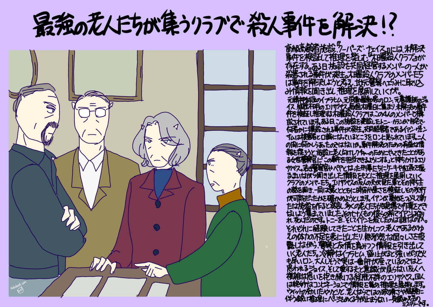 毎週木曜日に集まり、未解決の事件を検証し推理する木曜殺人クラブは、この四人のメンバーで構成されています。